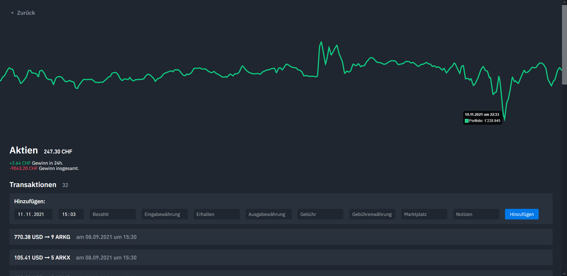 The application is designed in a way that it can calculate holdings, wins and losses based on